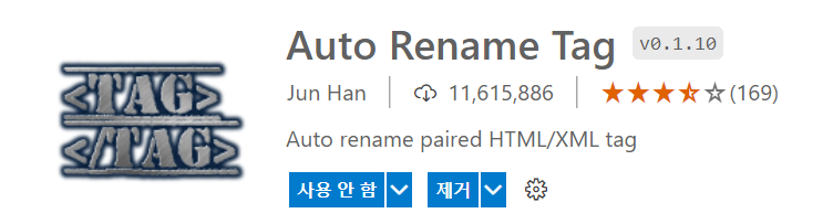 3. Auto Rename Tag (시작 태그명 변경 시 닫기태그 이름 동시 변경)